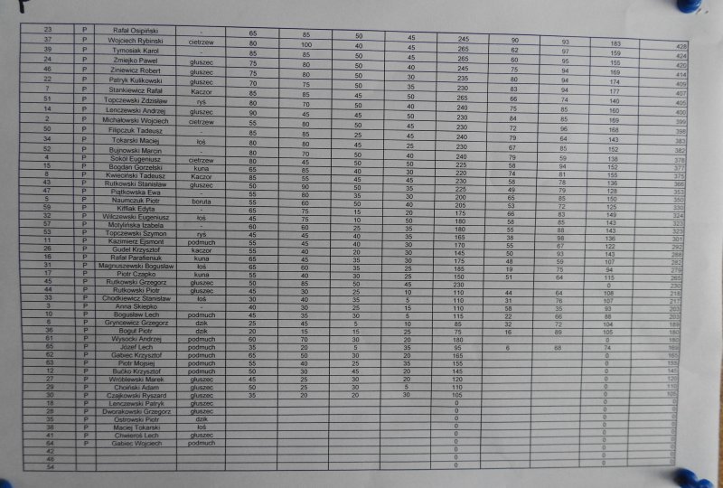 Serdecznie gratulując „ Głuszcowi” wspaniałego Jubileuszu oraz doskonale zorganizowanych i przeprowadzonych zawodów, poniżej zamieszczam pozostałe wyniki. Do zobaczenia na kolejnych zawodach…Darz Bór. Tomek K.