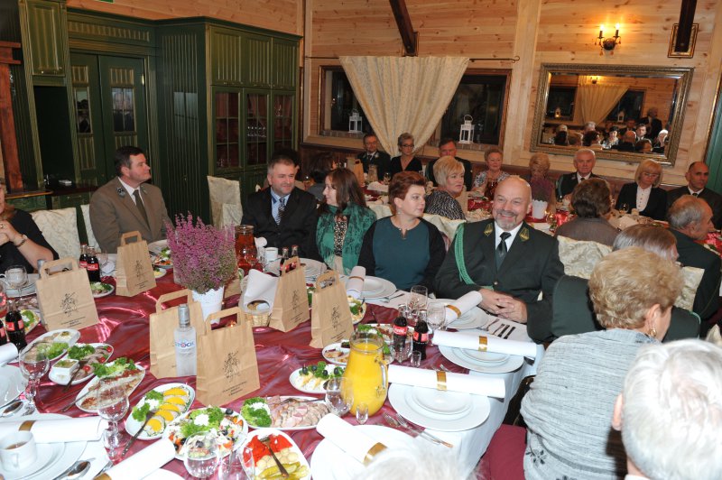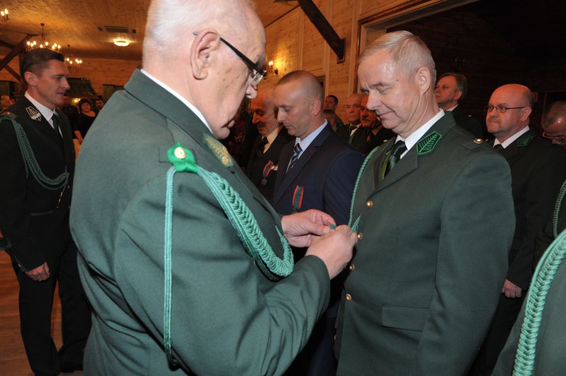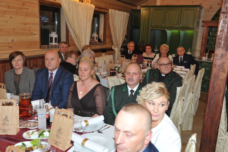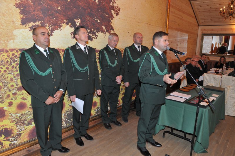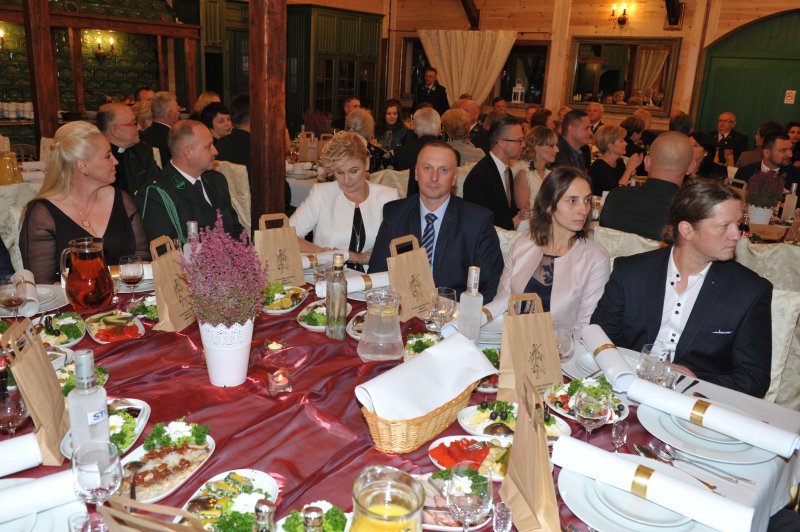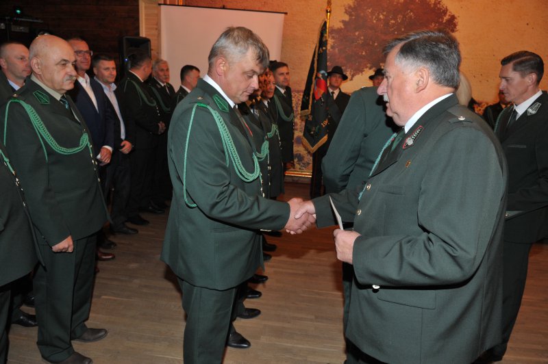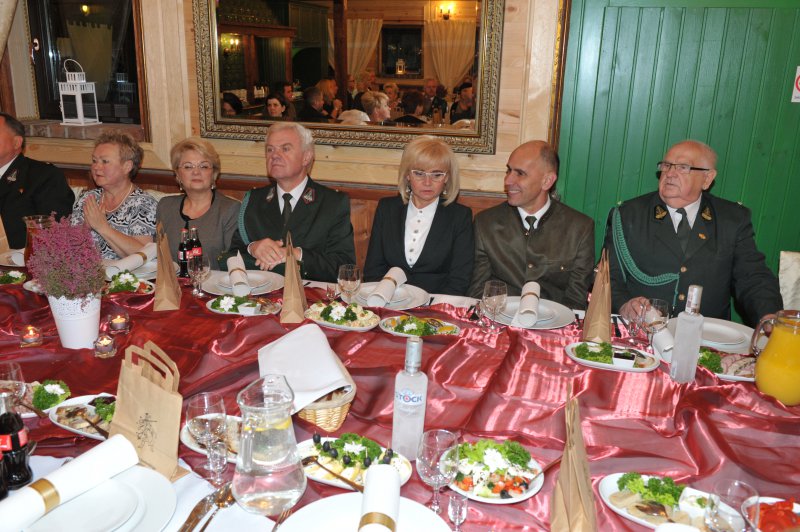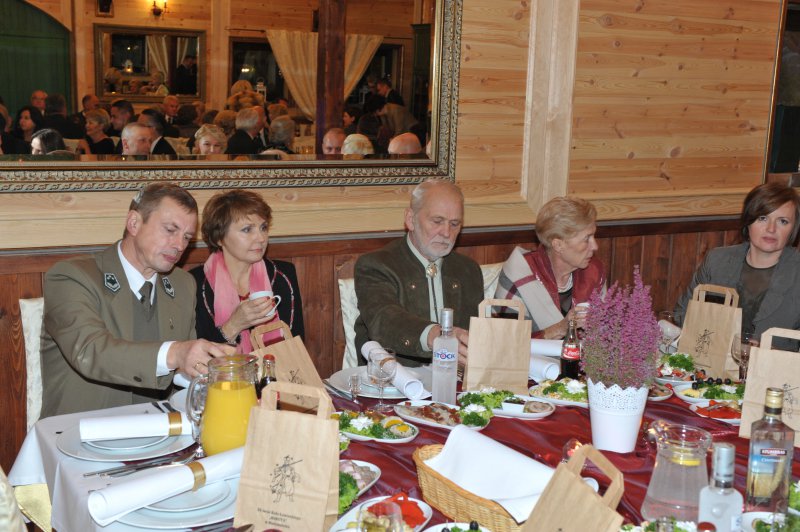 Na drugą część obchodów Jubileuszu, czyli biesiadę myśliwską połączoną z wręczeniem odznaczeń łowieckich, wszyscy przenieśli się do Restauracji „Pięć Dębów”. Tam, przy zachowaniu pełnego ceremoniału, przedstawiciele władz krajowych i okręgowych, w osobach: Pana Jerzego Procakiewicza – członka Naczelnej Rady Łowieckiej, Pana Lecha Chwierosia – prezesa Okręgowej Rady Łowieckiej oraz Pana Jarosława Żukowskiego – Łowczego Okręgowego, zgodnie z precedencją, dokonali wręczenia odznaczeń łowieckich.