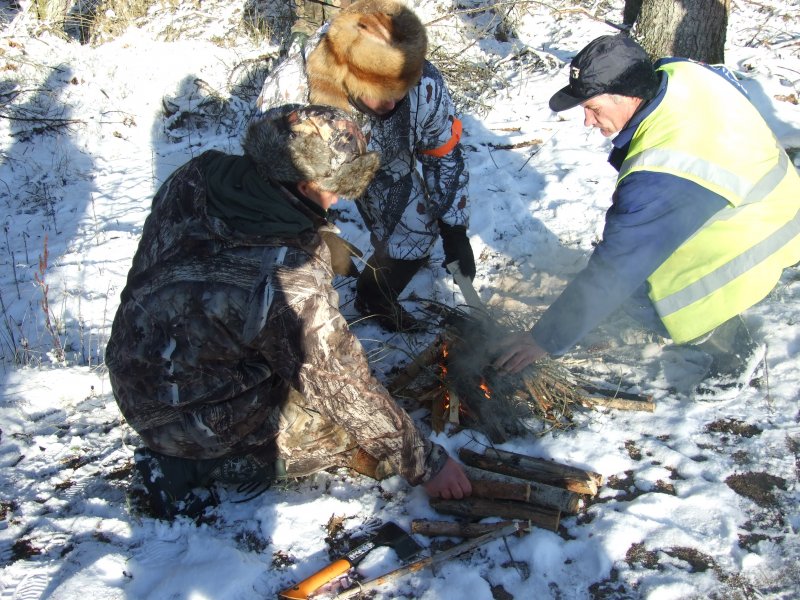 Piękny, słoneczny poranek powitał myśliwych, którzy w dniu 11 listopada 2012 punktualnie stawili się na odprawie w Mulawiczach, poprzedzającej drugie w tym sezonie łowieckim, polowanie zbiorowe. Prowadzący łowy, przesympatyczny i jak zwykle gościnny Józef Bazylczyk w sposób profesjonalny odprawił myśliwych, zwracając szczególną uwagę na szeroko rozumiane „bezpieczeństwo” wszystkich uczestników polowania jak i osób postronnych. Odprawie bacznym okiem przyglądał się łowczy Mieczysław Łapuć, który obecnością uświetnił polowanie i przez swoje wieloletnie doświadczenie niewątpliwie podniósł jego rangę. Pierwsze pędzenie przerosło najśmielsze oczekiwania nie tylko prowadzącego, ale i pozostałych kolegów. Po jego zakończeniu okazało się, że na rozkładzie można było podziwiać dwa dziki przelatki. Święty Hubert tym razem podarzył doświadczonym myśliwym, w osobach Tomasza Komarewskiego i Piotra Naumczuka. W kolejnych miotach zwierz pokazywał się tylko na chwilę bądź w obawie o swoje życie, przemykał przed lufą myśliwych na tyle umiejętnie i skrycie, że pokot pozostawał w niezmienionym kształcie. Ale prawdziwi i wytrwali myśliwi wiedzą, że póki prowadzący nie odtrąbi zakończenia polowania, nie należy tracić nadziei…Przedostatni miot był tego namacalnym dowodem. Dwie liszki nie miały żadnych szans w konfrontacji z samym prowadzącym i młodym myśliwym Krzysztofem Klimem, rozpoczynającym przygodę z łowiectwem. Zgodnie z tradycją i ceremoniałem łowieckim kolega Krzysztof, z rąk prowadzącego przyjął chrzest. Ogłoszenie i dekoracja króla polowania, którym okazał się Piotr Naumczuk, zakończyły wspólne łowy, przeprowadzone wzorcowo i w przemiłej atmosferze, za co w imieniu swoim i pozostałych myśliwych serdecznie dziękuję Józkowi i jego pomocnikom.